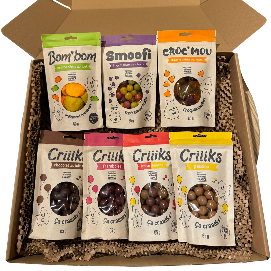 Dit assortiment bestaat uit 4 soorten criiiks en 3 soorten snoepjes van de Franse ambachtsman Thierry Court.