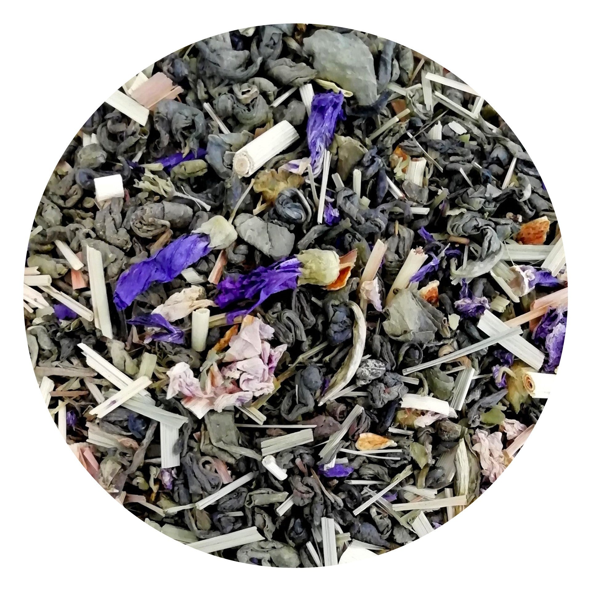- Thé* vert Gunpowder de Chine, citronnelle*,
