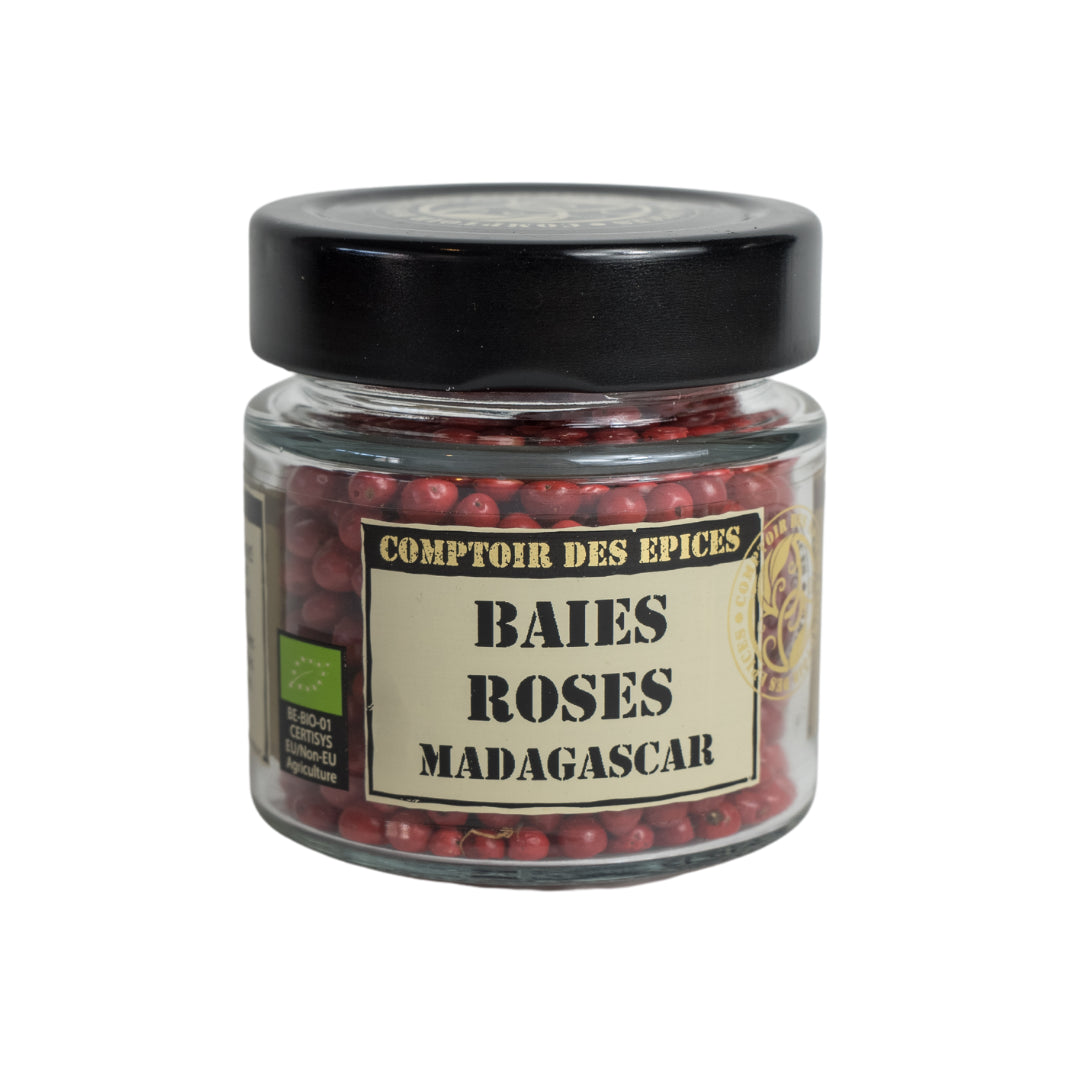 Découvrez ce poivre de baies roses de Madagascar, de petits trésors de la nature aux saveurs douces, aromatiques et florales. Ces jolis fruits de la famille des térébinthes apporteront une touche d'élégance à vos plats. Leurs notes sucrées se marient parfaitement avec les fromages frais, les salades, les poissons et même le chocolat.