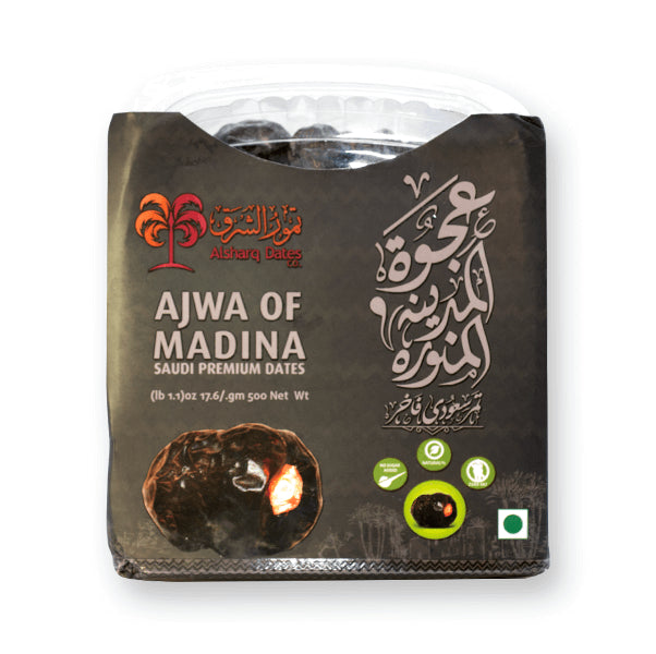 Ajwa dates come only from the Al Madina region of Saudi Arabia. Thanks to the presence of iron, magnesium, vitamins, folic acid and other essential nutrients, these dates are effective in preventing a number of ailments.