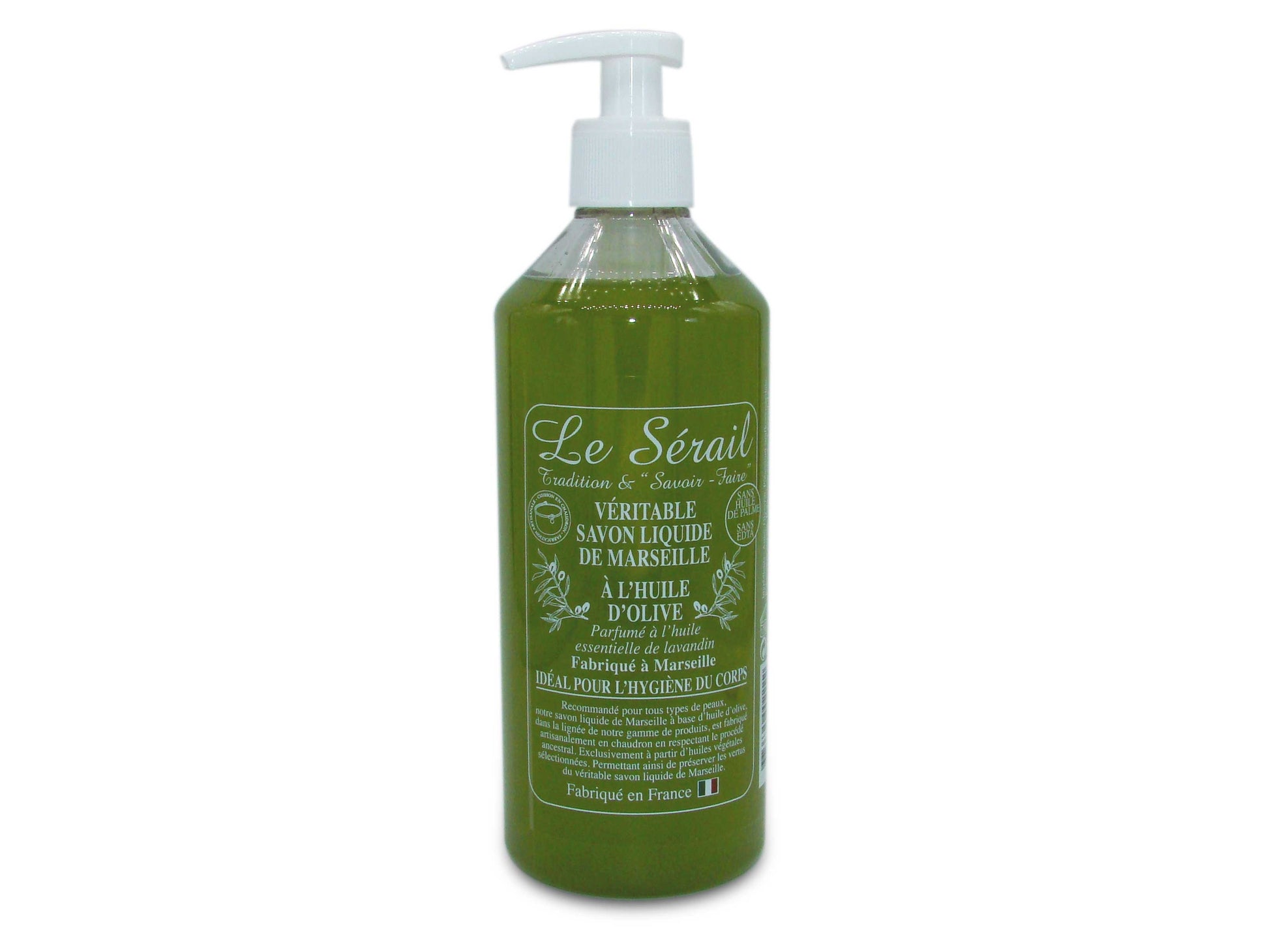 Le Serail propose un savon liquide à base de savon de Marseille combinée à une touche d'olive. Nous retrouvons une texture onctueuse avec un touche de fraîcheur.